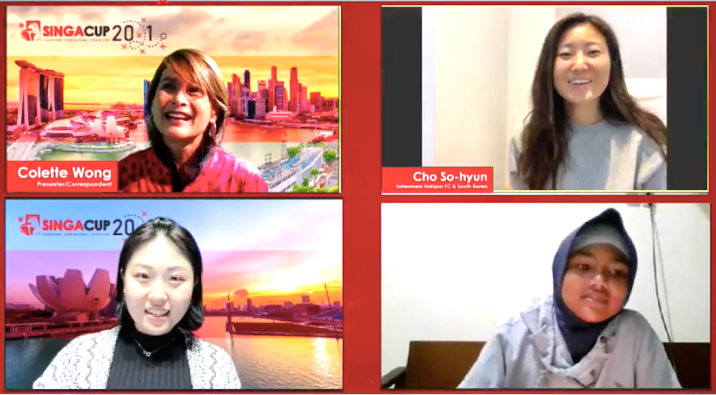 More recently, she was a moderator for a virtual meet and greet session between Tottenham Hotspur midfielder Cho So-hyun (top right) and fans during a virtual meet and greet session at the SingaCup 2021 on 16 December.