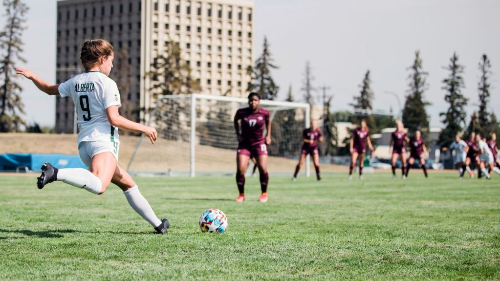 From first kick on Sunday, Alberta was the better team, playing with intensity in every pass and challenge. With head coach Kristyn Shapka fielding an attacking 3-5-2, Alberta dominated possession and kept the ball out wide, avoiding any sort of pressure falling on their centrebacks -- quick and fast out of the gate, it worked.