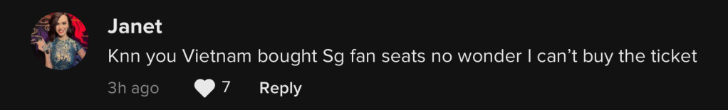 The Vietnamese fans had also said that they had purchased tickets from the black market, possibly from Singaporean buyers who then sold the tickets off to Vietnamese fans.